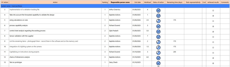 - If you use several Knowllence tools or programs, Action Facilitator centralizes all of your action plans: Design FMEA, Process FMEA, DRBFM, RM14971, and TDC Sécurité.