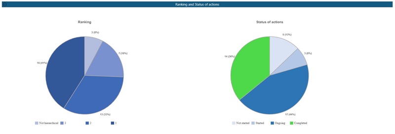 - A summary report prioritizes the actions by project risk (Risk Priority Number or Action Priority), state of advancement, and convergence.